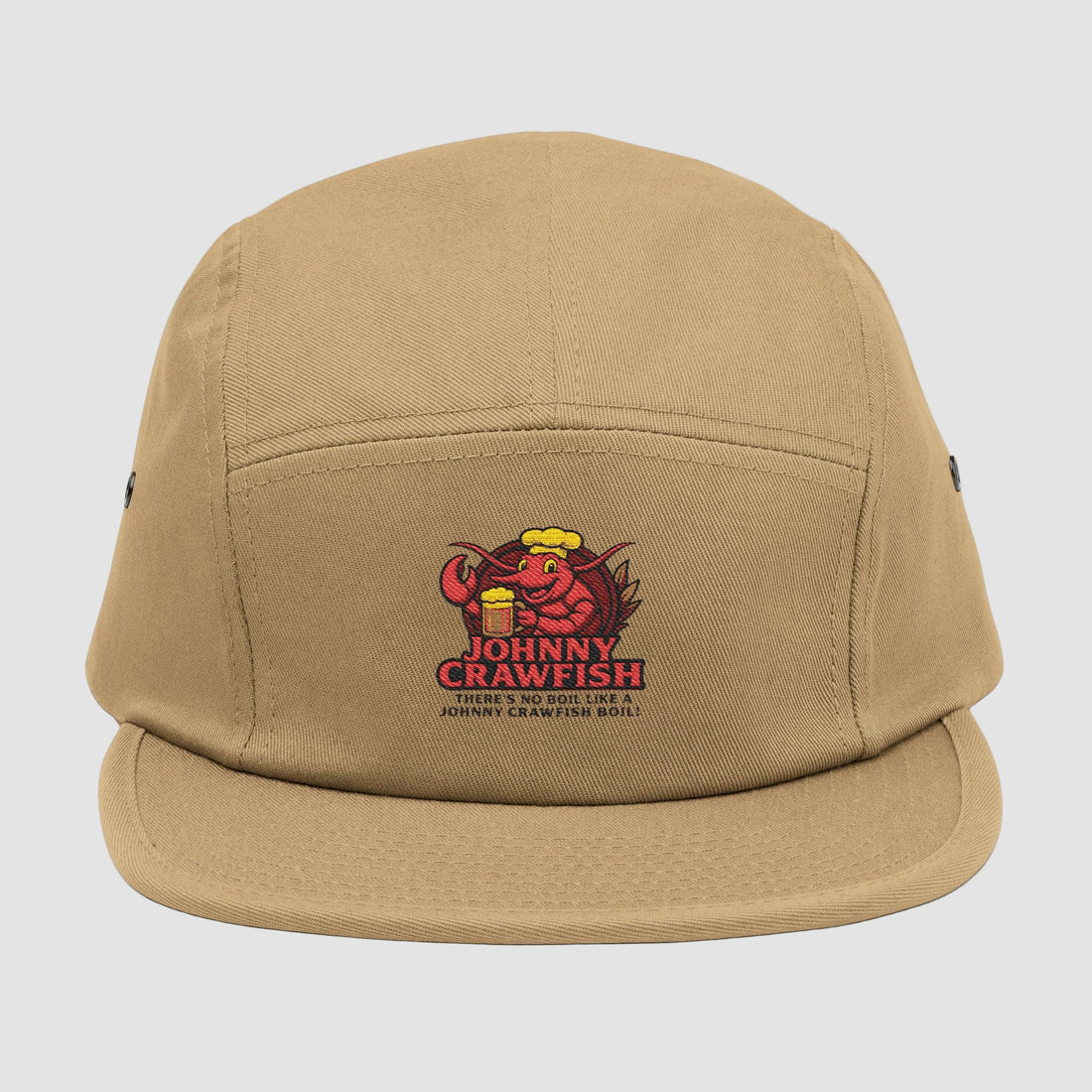 Embroidered 5 Panel Cap with Johnny Crawfish Design