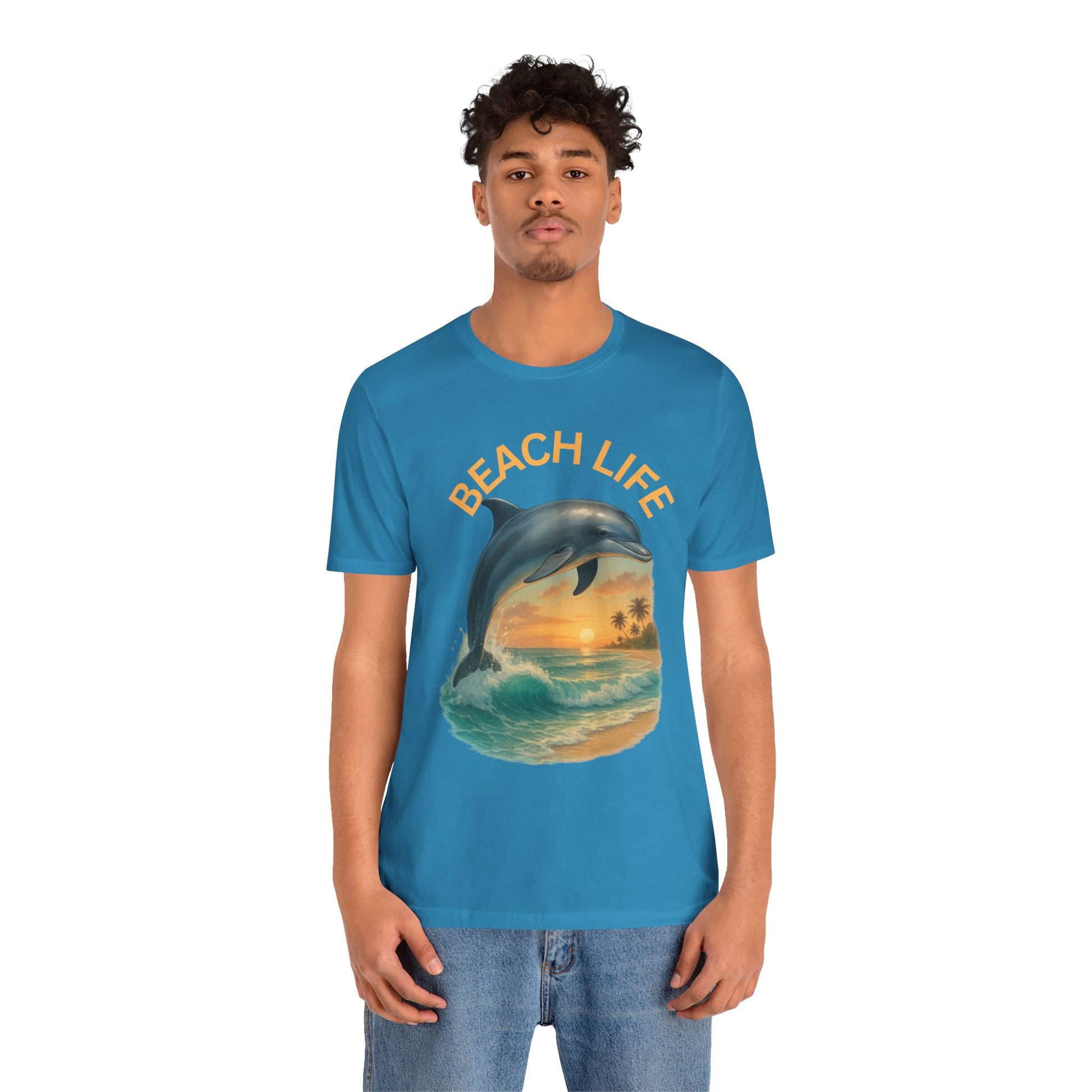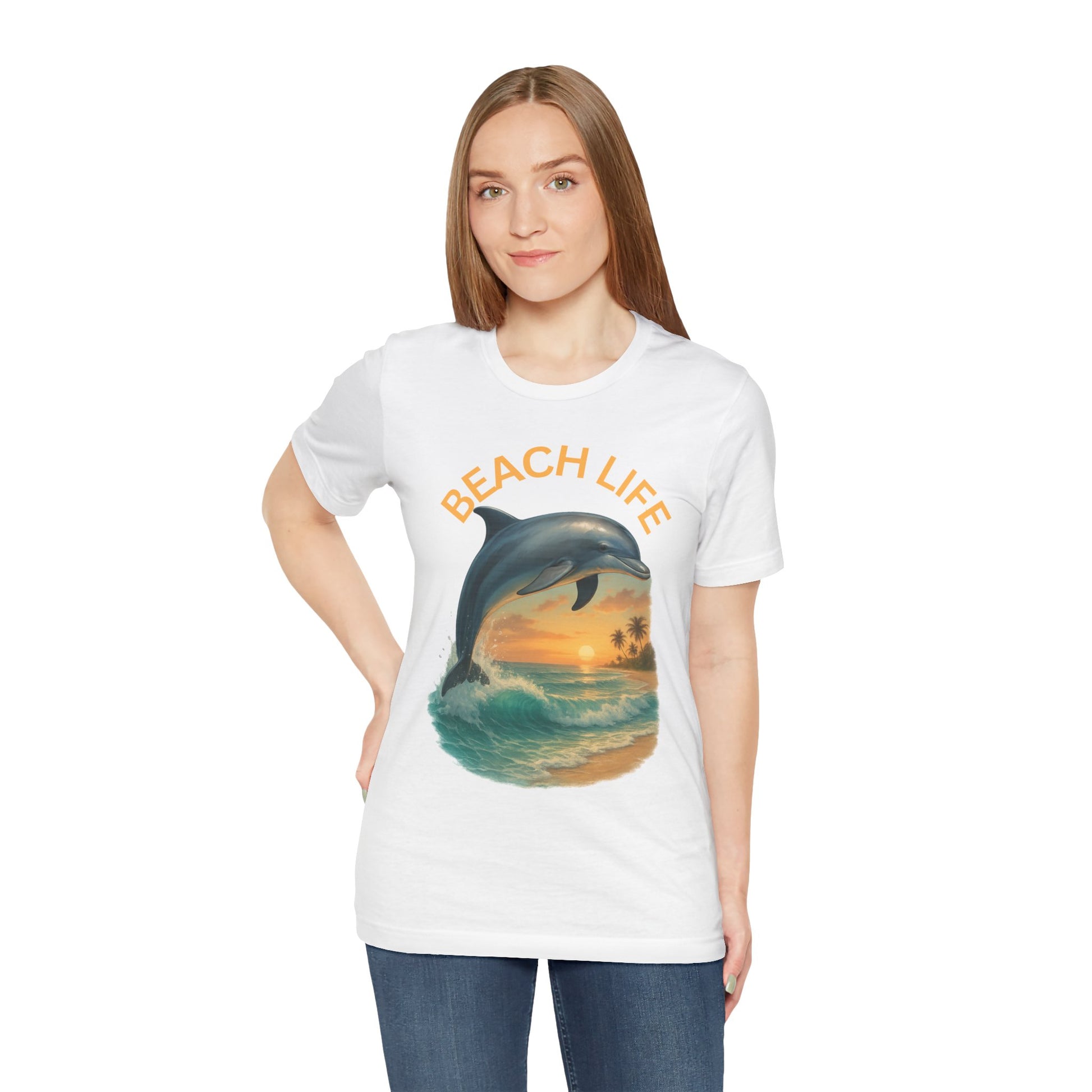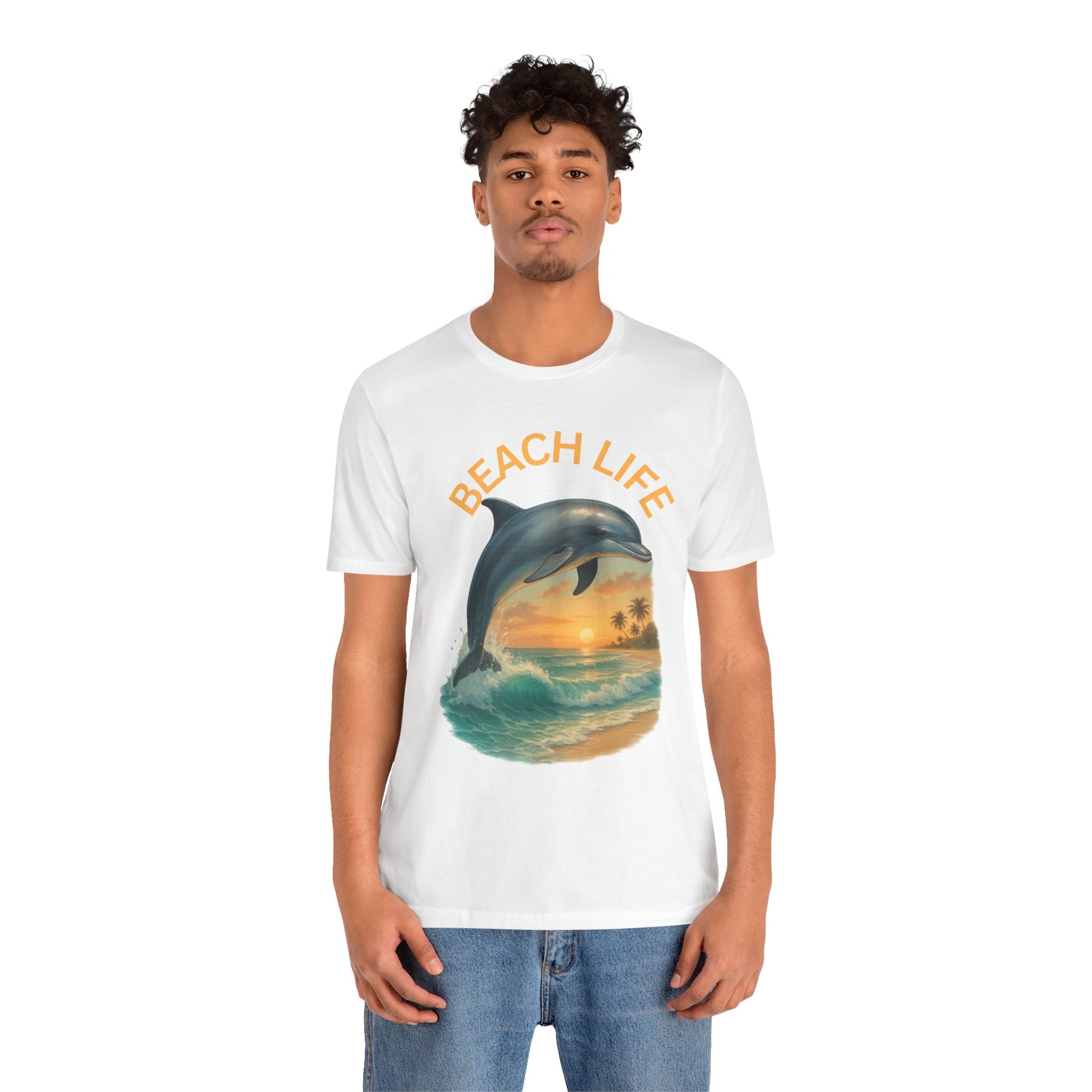 Beach Life Dolphin Tee, Unisex Summer T-Shirt, Coastal Style Shirt, Ocean Lover Gift, Relaxed Fit Casual Wear