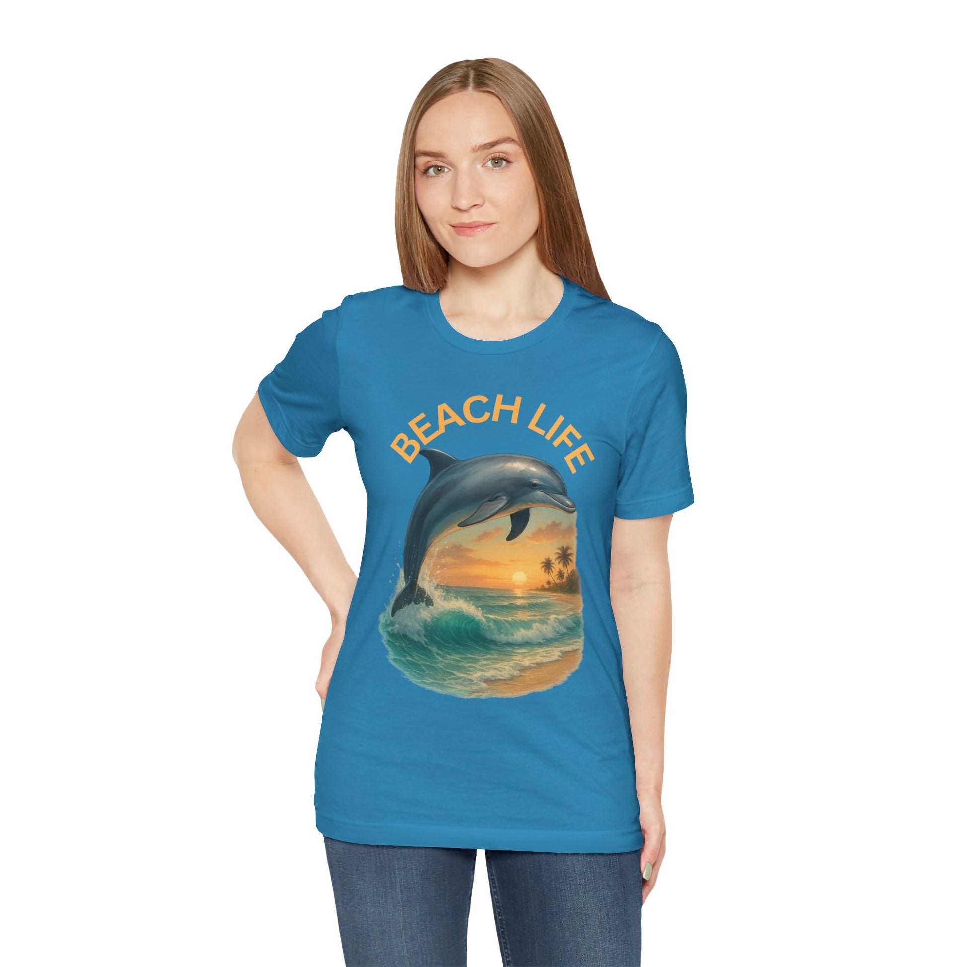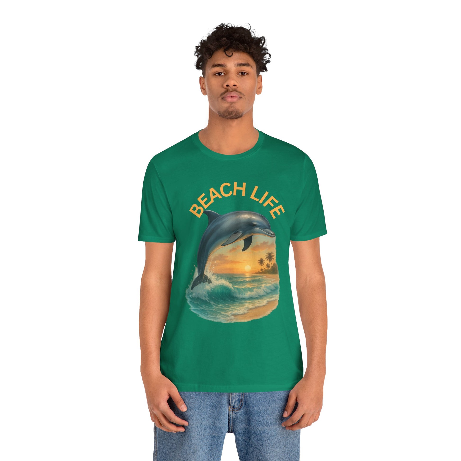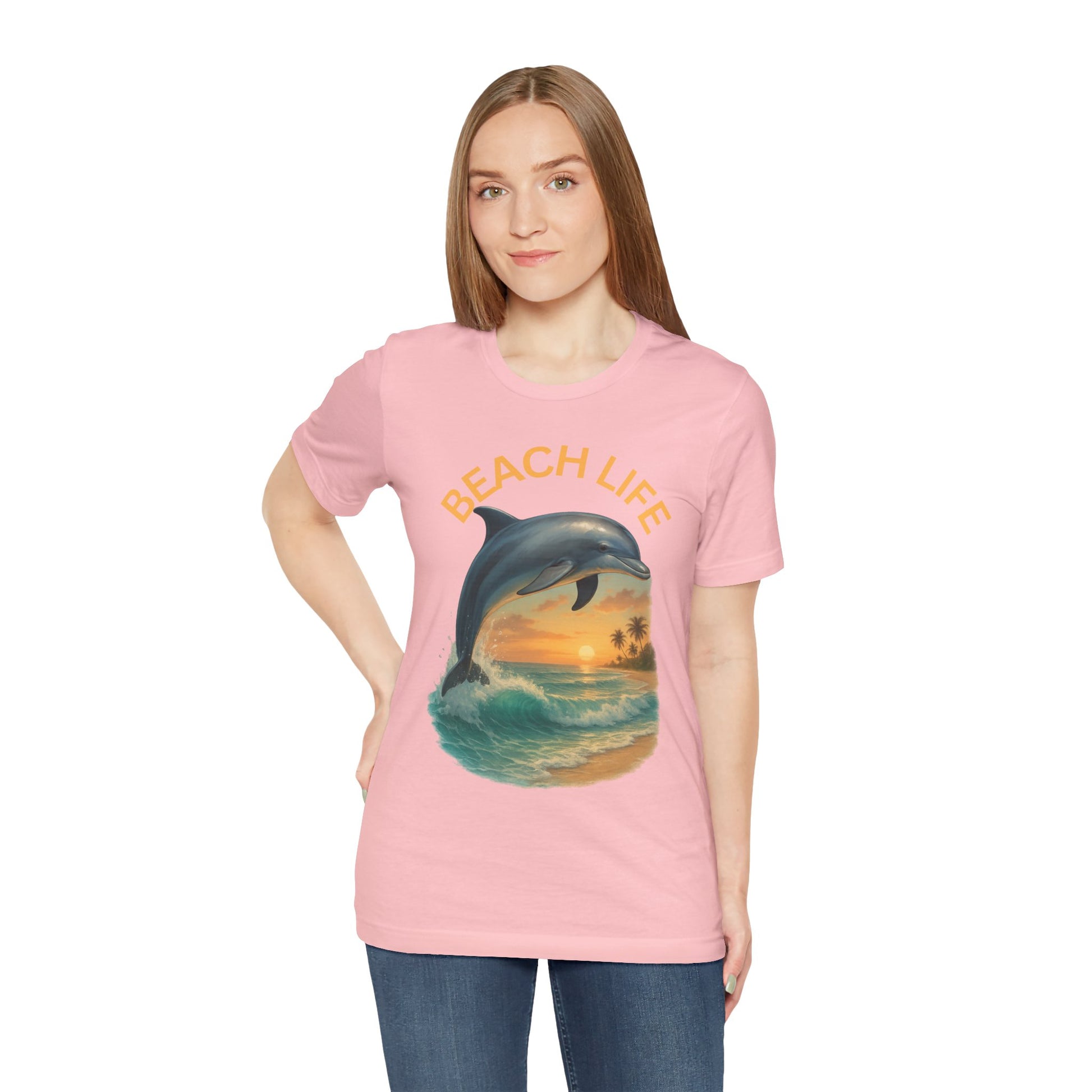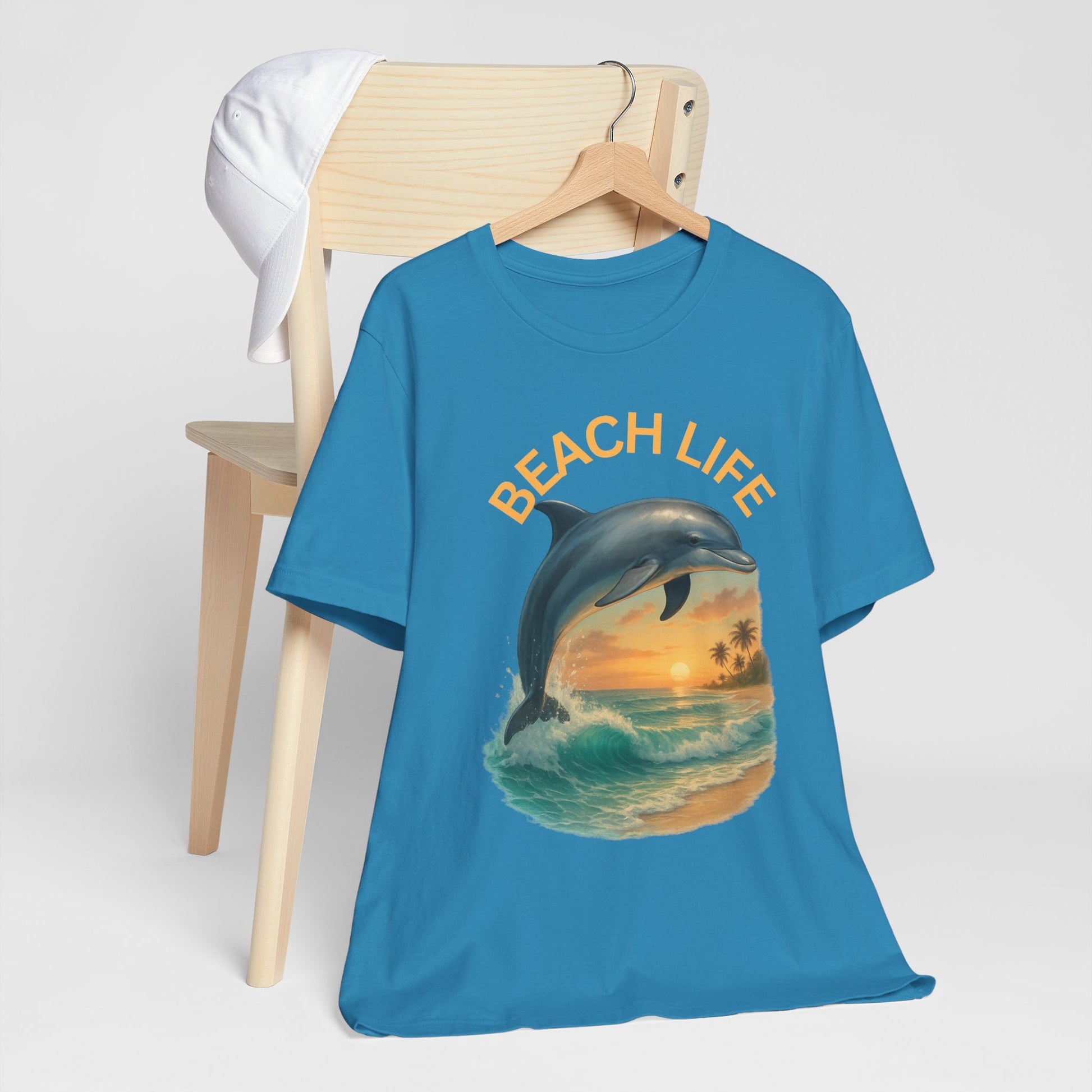 Beach Life Dolphin Tee, Unisex Summer T-Shirt, Coastal Style Shirt, Ocean Lover Gift, Relaxed Fit Casual Wear